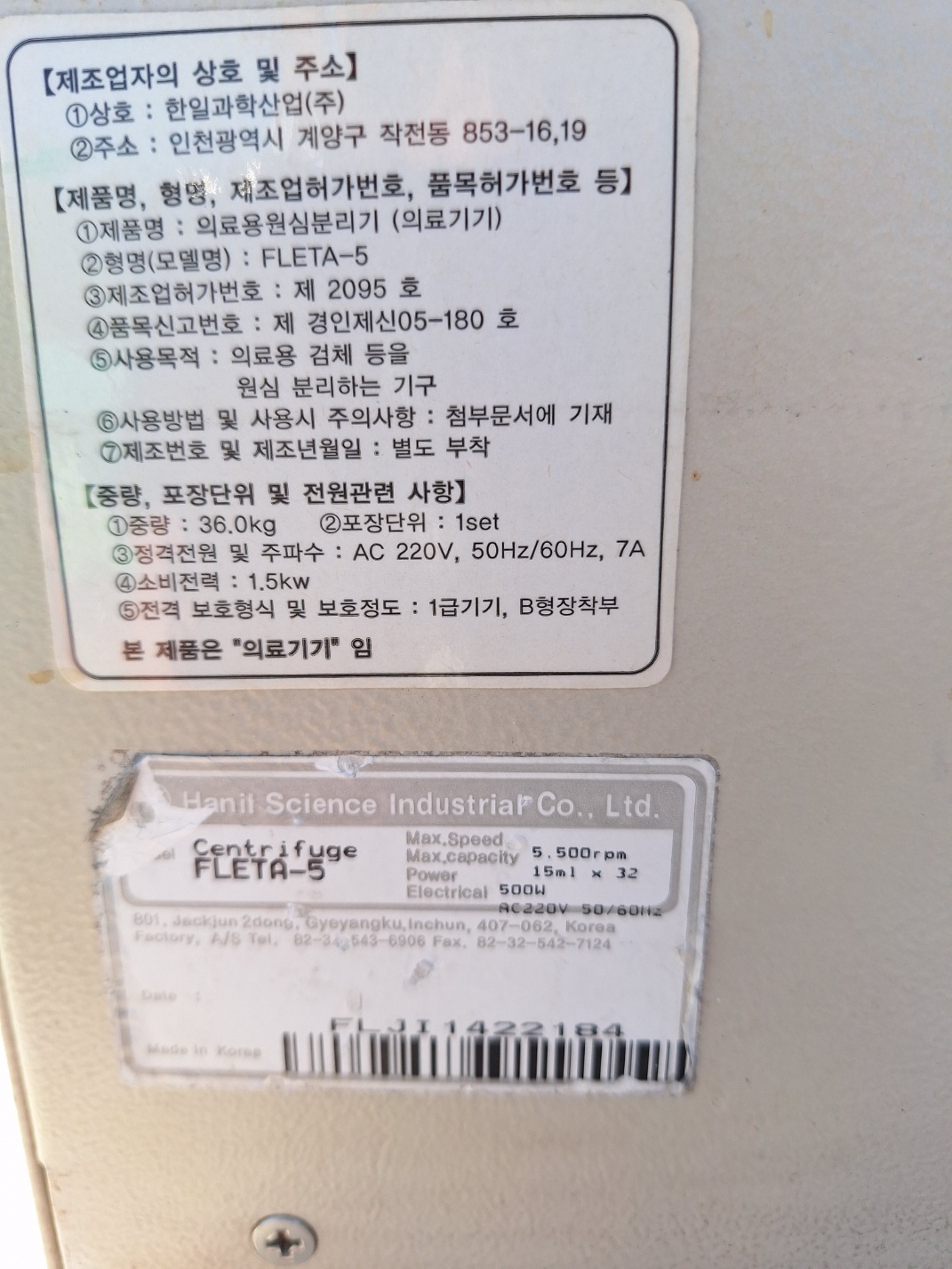 #한일과학; #FLETA5; #원심분리기; #15mlx32; #중고;